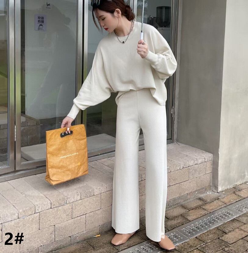 秋冬新作 ファッション ニット 2点セット ハイエンド レトロ風 ニット 厚手 トップス ワイドパンツ