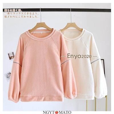 ルームウェア レディース 長袖 トップス バーか フリース ナイトウェア 暖かい 防寒着 ゆったり もこもこ ふわふわ 厚手 部屋着 寝巻き シンプル 冬用