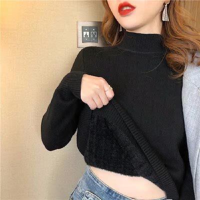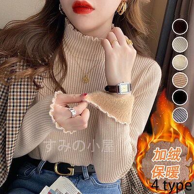 【2枚購入で200円OFF】秋冬裏起毛4TYPEレディースカットソーニットセーター保温暖かい上質リブタイトシルエットストレッチカットソートップス