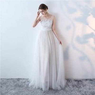 ウエディングドレス 二次会 花嫁 Aライン 白 ホワイト ロングドレス 結婚式 パーティードレス 演奏会 フォーマルドレス サッシュリボン