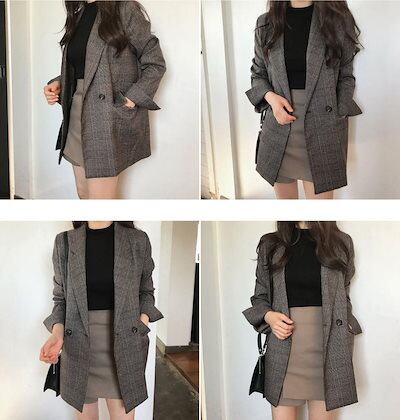 【本日限定】ジャケット レディース 秋 コート アウター 薄手 長袖 ミディアム丈 ライトアウター 袖スリット 裏地 グレンチェック柄 お洒落 可愛い カジュアル シンプル スーツジャケット 普段使い
