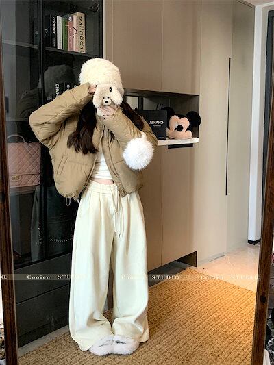 ふっくら中綿 あたたかい 冬 防寒あったか暖かいかわいい ブルゾン厚手アウターBF風スタンドハイネック無地羽織る ファッション系大人ゆったりカジュアルストリート にサイズ丈シルエット秋レディース黑白