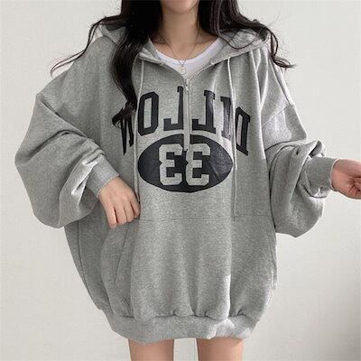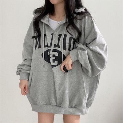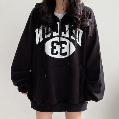 2024 秋冬2カラー プルオーバー ハーフ パーカー ロゴプリント 裏起毛 トップス 韓国ファッション レディース ストリート系女子 カジュアル