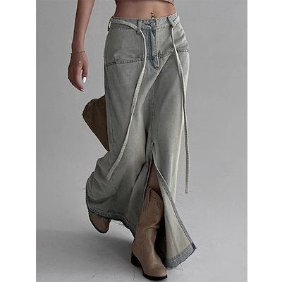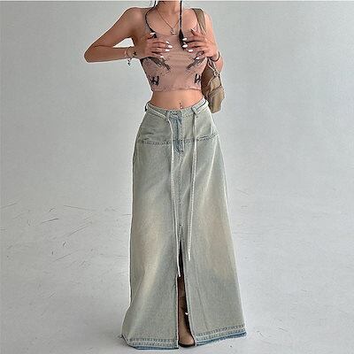 納期1~3週間程:レディースデニムスカート,ロングラインデニム,グランジウェア,90年代韓国ファッション,emo 2000s,y2k,ヴィンテージ
