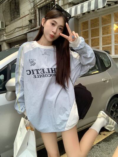 2024 秋冬 トレンド トップスバイカラー長袖 薄手 かわいいK-POPTロング黑白レディース韓国風ロゴ衣装ルーズゆったりカジュアルおしゃれサイズスリーブシルエットファッション系サイドシャツフット