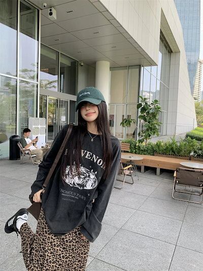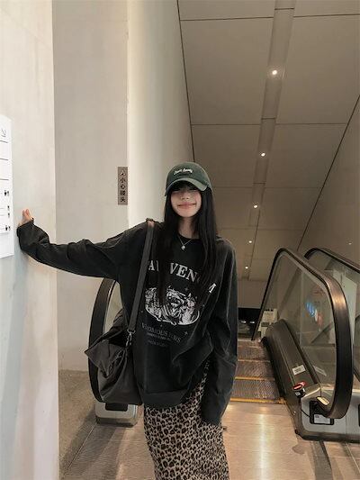 2024 秋冬 トレンド トップス 長袖 かわいい Tシャツ レディース 韓国風 衣装 ルーズ 黑 ゆったり カジュアルおしゃれサイズスリーブシルエットファッション系サイドシャツフット