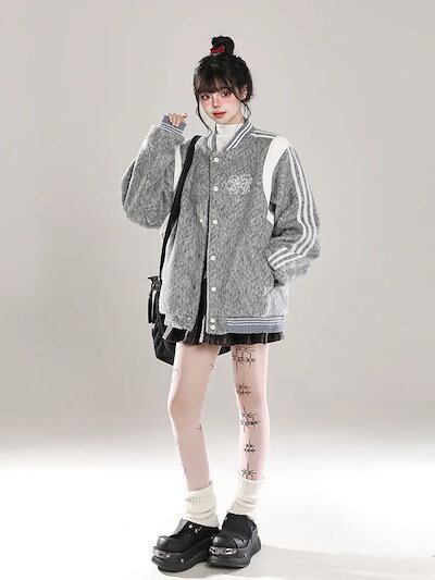 2024 秋冬 韓国かわいい レディースふっくら厚手アウター ブルゾン お出かけ長袖セクシーベースシルエットトップスリッチ サイド冬カジュアルファッション系サイズお出かけネックフル丈スリーブトラック