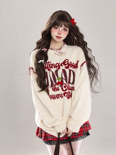 2024 秋 冬 レイジースタイル 長袖 韓国 ニット セーター トップス クルーネックストリートカジュアルシルエット色っぽ女っぽカジュアル大人っぽ上品サイズゆったりレディースゆったり春