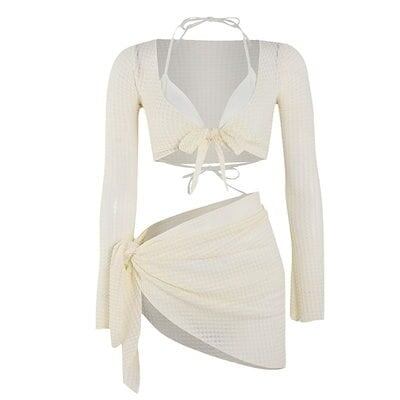 本日の限定商品 水着【即納】 ビキニ水着 レディース新作4点セットセクシースプリット薄手ホリデースパ水着