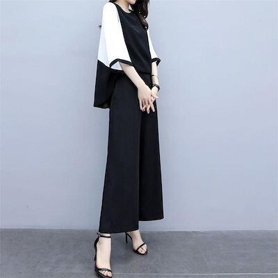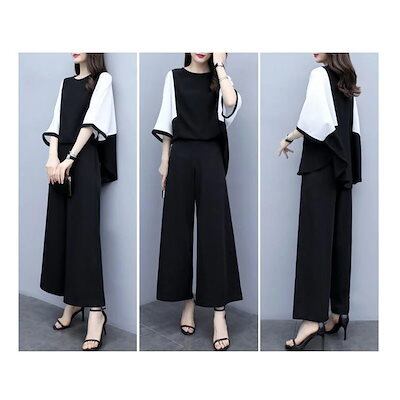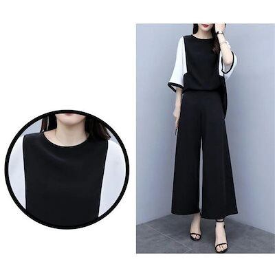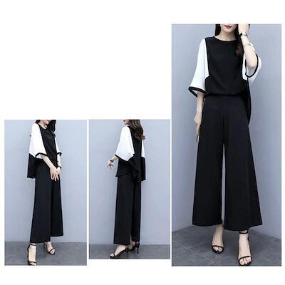 【激安通販】セットアップ レディース 夏 パンツスーツ シャツ ブラウス 七分袖 ロングパンツ ガウチョパンツ 着痩せ フォーマル お呼ばれ 結婚式 通勤