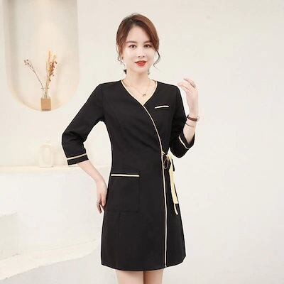 人気 ユニフォーム エステ サロン通勤 セットアップ レディース 制服 半袖 七分袖 美容師 マッサージ師通勤 ワンピース セットアップ 美容 介護 エステ制服