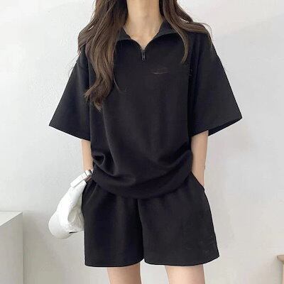 セットアップ レディース 夏人气新作 無地 ジャージ ゆるい レディース 上下セット 二点セット韓国ファッション