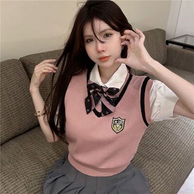 セットアップ レディース 夏セーラー服可愛らしいJK制服セットアップ ファッション レディース夏フェイクレイヤード切り替えトップス