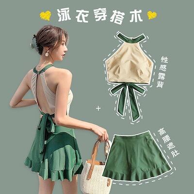 水着 レディース 韓国ワンピース水着女2024首掛け夏セパレート2点セット 温泉 修学旅行 可愛い ラッシュガード 水着 体型カバー ワンピース ビキニ