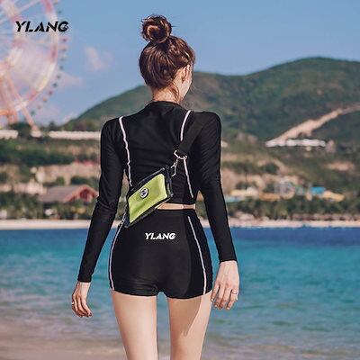 水着 レディース 韓国 速乾日焼け止め長袖水着控えめハイウエスト水着痩せ温泉フラットパンツ 温泉 修学旅行 可愛い ラッシュガード 水着 体型カバー ワンピース ビキニ