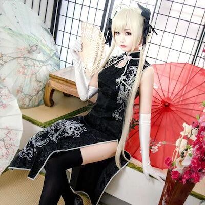 2024 ロリータ ドレス コスプレ服 4点セットチャイナドレス扇子コスプレ全セットお姉さん衣装セット コスプレ ワンピース ロリータワンピース