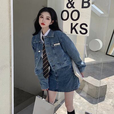 秋ガールコーデ デニムジャケットミニスカート 上下2点セット セットアップ カジュアルコーデ 学生コーデ