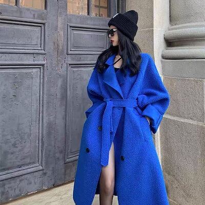 ゆったりトレンチコート ウエスト引き締めラシャ ウールコートおしゃれ アウター オーバ