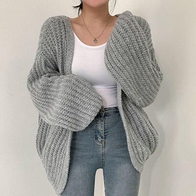ベーシックニット Tシャツカットソー ニットカーディガン レディース 無地 ファスナーセーター レディース ニットセーター アウター 春秋 ニット
