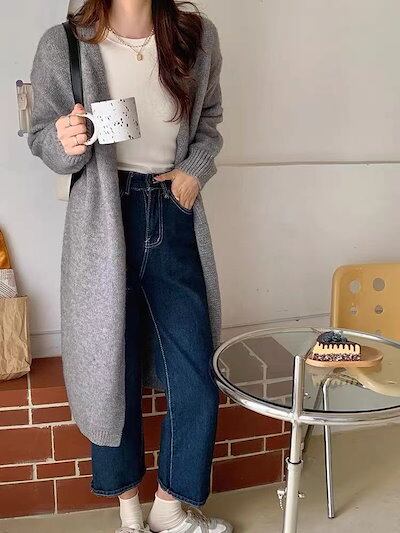 ベーシックニット Tシャツカットソー 秋 無地 セミロング ニット カーディガン レディース セーター アウター