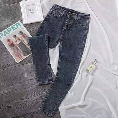 春秋新作 タイツ本 着痩せ レディース ハイウエストジーンズ ばね力 ハイテンション やせて見える 薄い