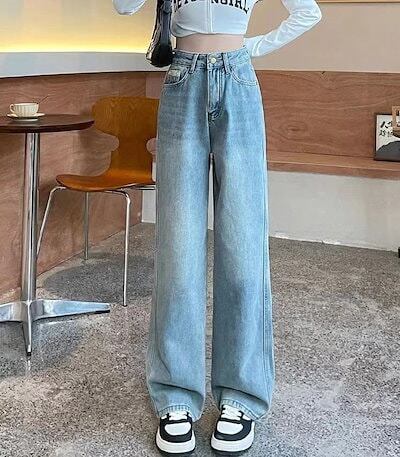 デニムワイドパンツ 秋新作 薄い色 ワイドパンツ ストレートシリンダ ゆとりがある 着痩せ カジュアル 快適 韓国ファッション 百掛け やせて見える