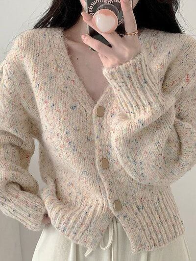 ベーシックニット 初秋 長袖 セーター ニットカーディガン トップス アウター カーディガン 新作 秋冬気質 韓国 Vネック 20代 おしゃれ 通勤カシミヤタッチ 福袋