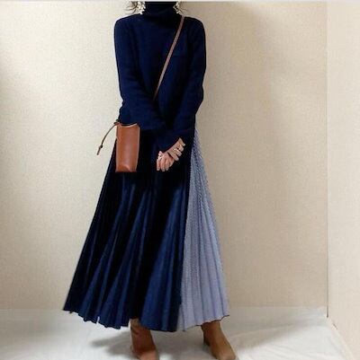 ニットワンピース 冬のワンピース秋アウター 韓国ファッション セミロング 長袖 プリーツワンピース トップスワンピース トップス ニット トップスワンピース 総丈