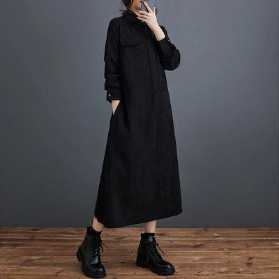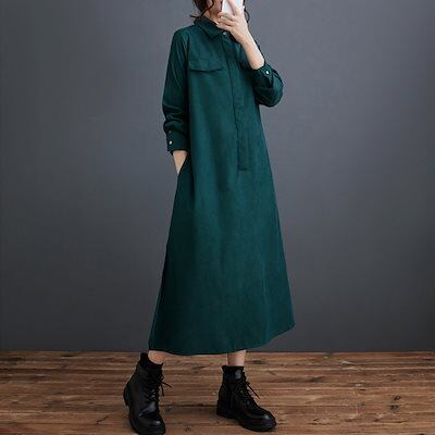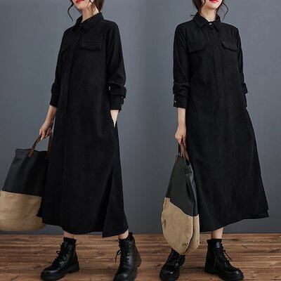 ワンピース 秋冬 新作 スリット カジュアル コーデュロイワンピース 丸ネック おしゃれ 気質 レディースワンピース 高級感 着痩せ ロングワンピース 韓国ファッション