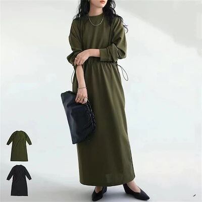 秋冬 新作 おしゃれ 気質 カジュアル ワンピース 丸ネックワンピース シャツワンピース 長袖 2wayワンピース 高級感 着痩せ ロングワンピース 韓国ファッション