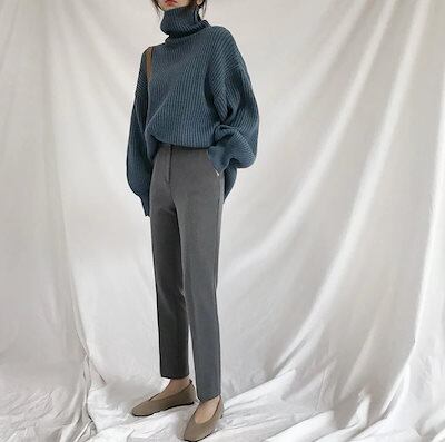 秋冬新作 韓国ファッション 無地 ニット 通勤 4カラー セーター タートルネック 厚手 リブニット トップス ニット レディース ニットカシミヤタッチ 福袋