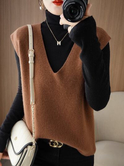 秋 冬 ニット ゆったり シンプルトップス ニットベスト レディース Vネックドルマンスリーブ タンクトップ 大きいサイズ 薄手 体型カバー ノースリーブニット AWアウター