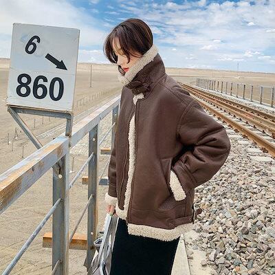 皮毛一体 皮ジャンパー 秋アウター 人気 ゆったり 秋ジャケット カジュアル ダウンジャケットラムズウール ジャケット 防寒 ジャンパーAWアウターダウン混綿ジャケット 福袋