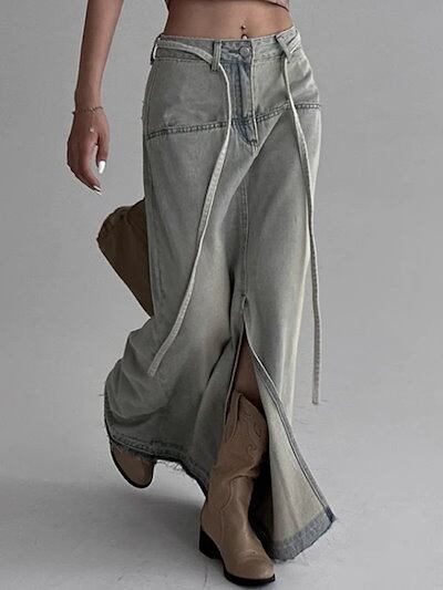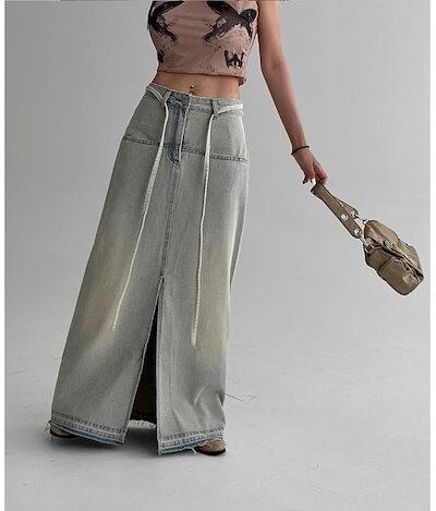 納期1~3週間程:レディースデニムスカート,ロングラインデニム,グランジウェア,90年代韓国ファッション,emo 2000s,y2k,ヴィンテージ