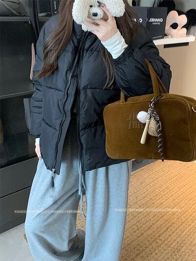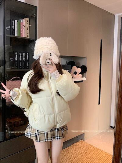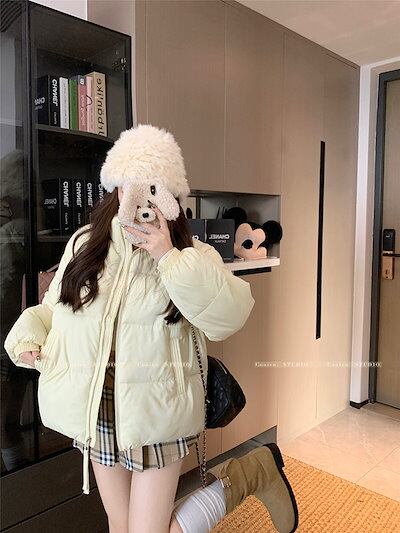 ふっくら中綿 あたたかい 冬 防寒あったか暖かい韓国かわいい ブルゾン 厚手アウター BF風無地羽織るファッション系大人ゆったりカジュアルストリートスタンドネックにサイズ丈シルエット秋レディース黑白