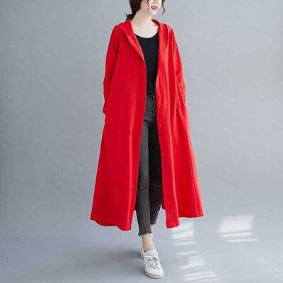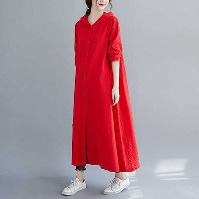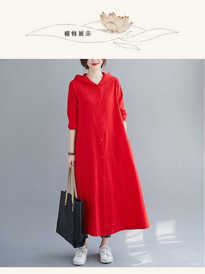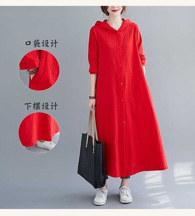 「ファットガール」 2024秋新品 ロングカーディガン 綿麻 パーカーワンピース 大きいサイズ 体型カバー レディース フード付き リネンワンピース メガ割