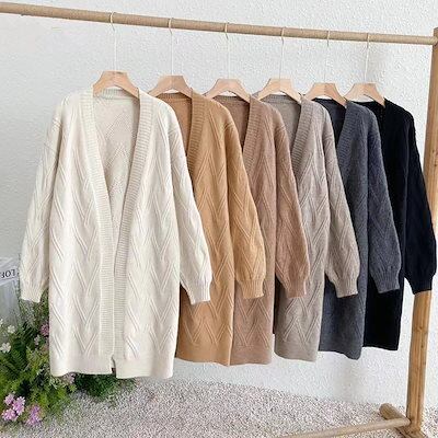 韓国ファッション 初秋新作 ニットカーディガン セミロング ニット レディース トップス セーター ゆったり 百掛け カーディガン 秋アウター ベーシックニット