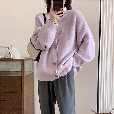 カーディガン 韓国ファッション ニットカーディガン トップス レディース Vネック 着痩せ 気質 カーディガン セーター アウター 長袖 ニットカーディガン