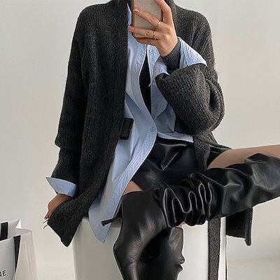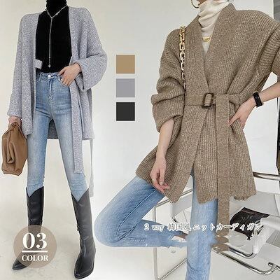 ニットカーディガン レディース 40代 秋冬 アウター ミディアム丈 長袖 Vネック 無地 厚手 ニットトップス 着やせ ゆったり 体型カバー 2way 30代 50代