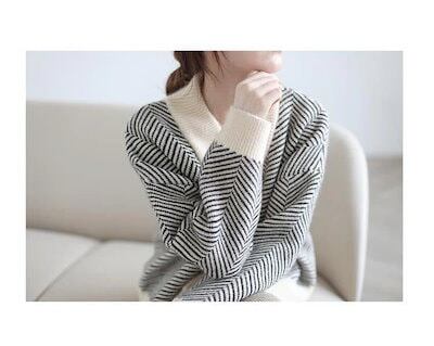 ニットカーディガンニット レディース カーディガン トップス 長袖 ボーダー柄 ストライプ 配色 Vネック カットソー 厚手 オフィス アウター 大きいサイズ ゆったり カジュアル 黒 春 冬 秋