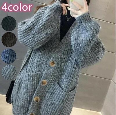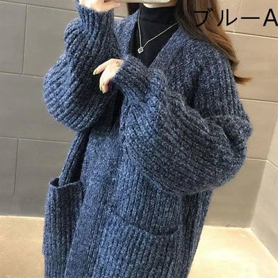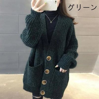 ニットカーディガンニット レディース カーディガン トップス 長袖 ポケット付き カットソー 無地 厚手 オフィス アウター 大きいサイズ ゆったり カジュアル 黒 春 冬 秋