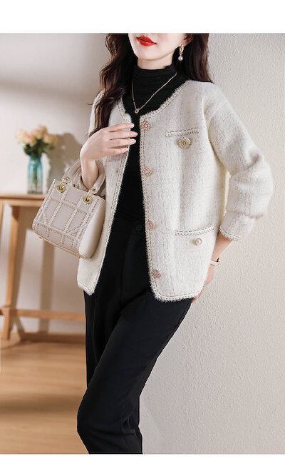 ニットカーディガンカーディガン レディース 秋 冬 長袖 ニットカーディガン ツイード調 ふわふわ もこもこ セーター さっと羽織れる ニット羽織 ゆったりフェミニン 着回し シンプル カジュアル 体