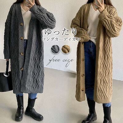 ニットカーディガンカーディガン ケーブル編みニット レディース ロング丈 秋 冬 ロングカーディガン ニットカーディガン カーデ コート アウター 厚手 あったか ニット セーター ビッグシルエット