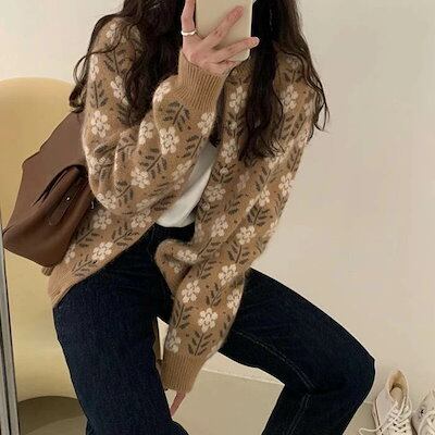 ニットカーディガンニットセーター レディース 秋 冬 カーディガン 花柄 ニット カーデ コート アウター とろみ ショート ゆったり 柔らか カジュアル 体型カバー 大きいサイズ お洒落 春 秋 冬