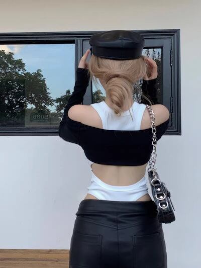 2024秋 長袖 Tシャツ ショート丈 カットソーワッペンK-POPトップス カジュアルタンク 韓国系ストリートへそ出しタイトネックスリーブ 肌見せ T ファッションレディースかわいいサイド衣装風冬