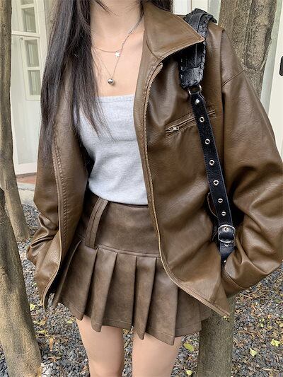 2024 秋冬 長袖 かわいい 2点セット ショート アウター ブラック 羽織り合成バイカラーカジュアル きれいめ 女っぽ きれいめ ファッション 色っぽ 女っぽカジュアルきれいめ大人