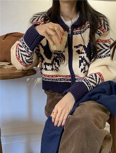2024 秋 韓国 かわいい レディース ニットカーディガン アウター ブルゾン お出かけ アウター長袖セクシートップスサイド冬カジュアルファッション系お出かけフル丈