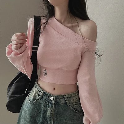 2024 秋冬 トップス 長袖 かわいいショート丈ラウンドネック Tシャツ 肌見せ レディース 韓国風 ルーズ ゆったり 無地 カジュアル おしゃれ ファッション系コーデ衣装ストレートお出かけ