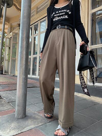 2024 春秋パンツ ロング丈 ワイド ストレート ハイウエスト 美脚効果 脚長効果 細見え 秋 黒 白 緑 おしゃれ かわいい 韓国ファッション レディース お出かけ