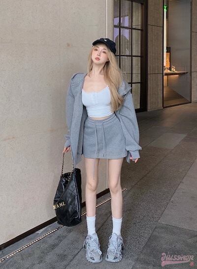 上下別売り 普段使い 長袖シャツ トップス ミニスカート丈長めルーズ レディース かわいい シルエット 2点セット フード付き風 きれいめ サイズ 秋冬 ゆったり ファッションダ ブル 大人 可愛い